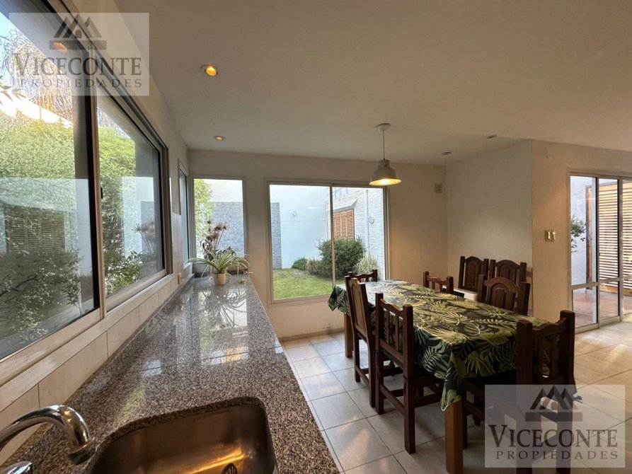 - Cocina con mesada, bajo mesada y alacenas, desayunador y barra pasa platos.
