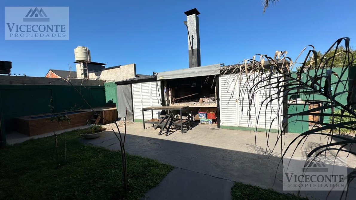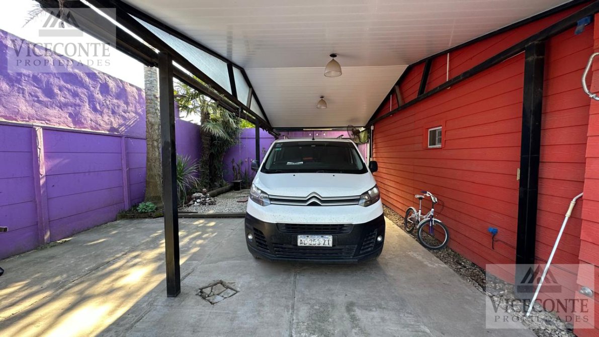 - 1 garage para dos vehículos con portón de ingreso corredizo y automático de hierro utilizado como espacio semicubierto. El techo de chapa presente tinglados desplegables automáticos.