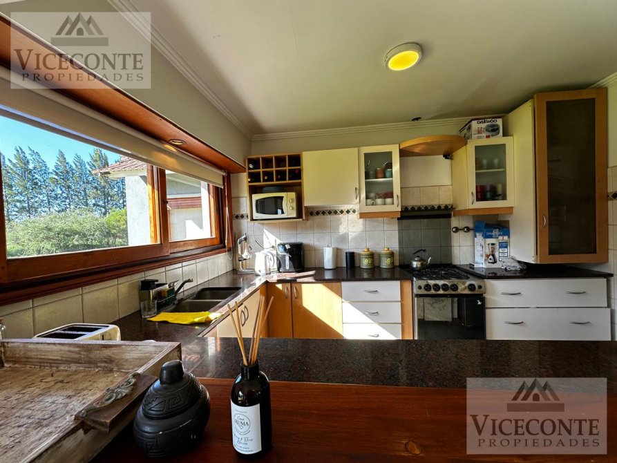 - 1 cocina con mesada, bajo mesada y alacenas, con barra pasa platos hacia el comedor amplio.