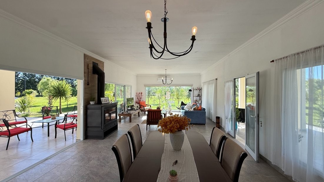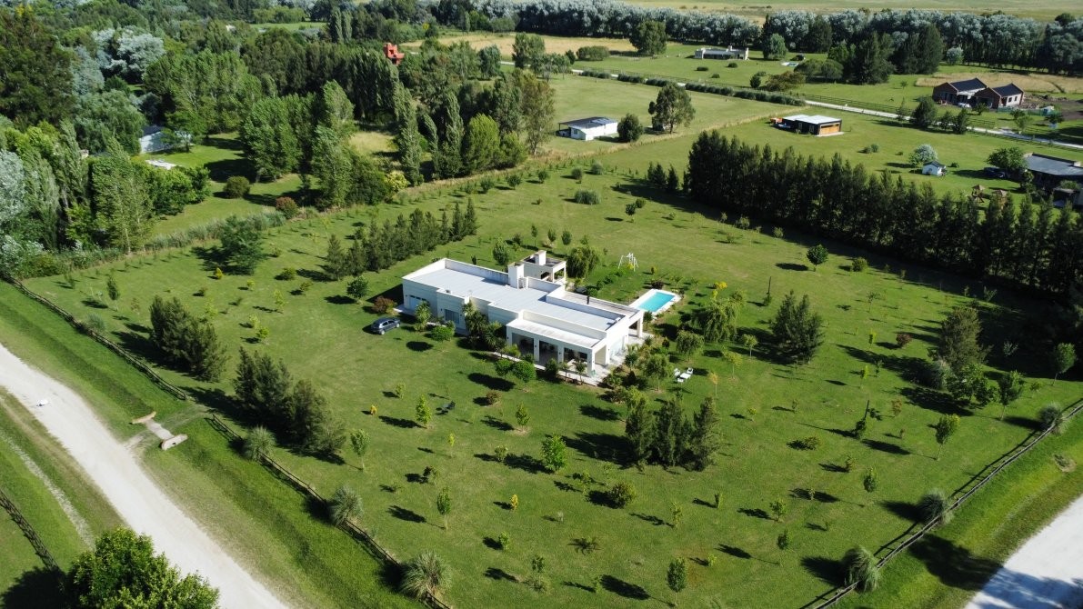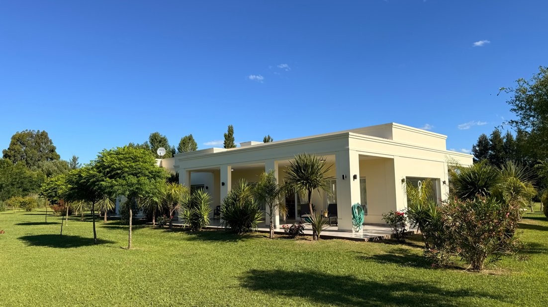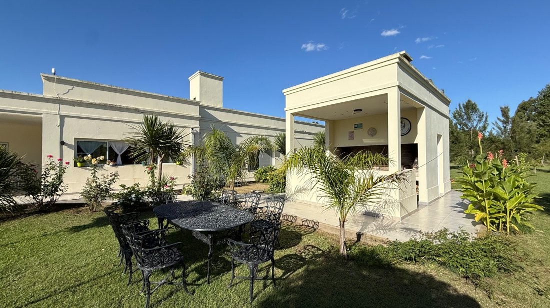 Destacada propiedad de muy buen nivel constructivo, desarrollada íntegramente en planta baja, emplazada sobre un amplio lote parquizado de 12.474 m², en un entorno abierto, verde y sumamente tranquilo, ideal para quienes buscan calidad de vida, confort y privacidad.