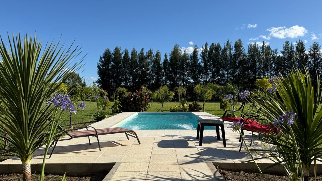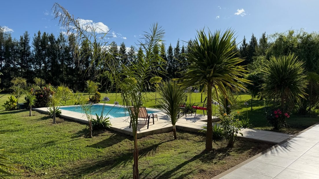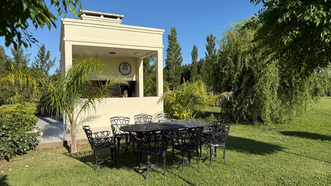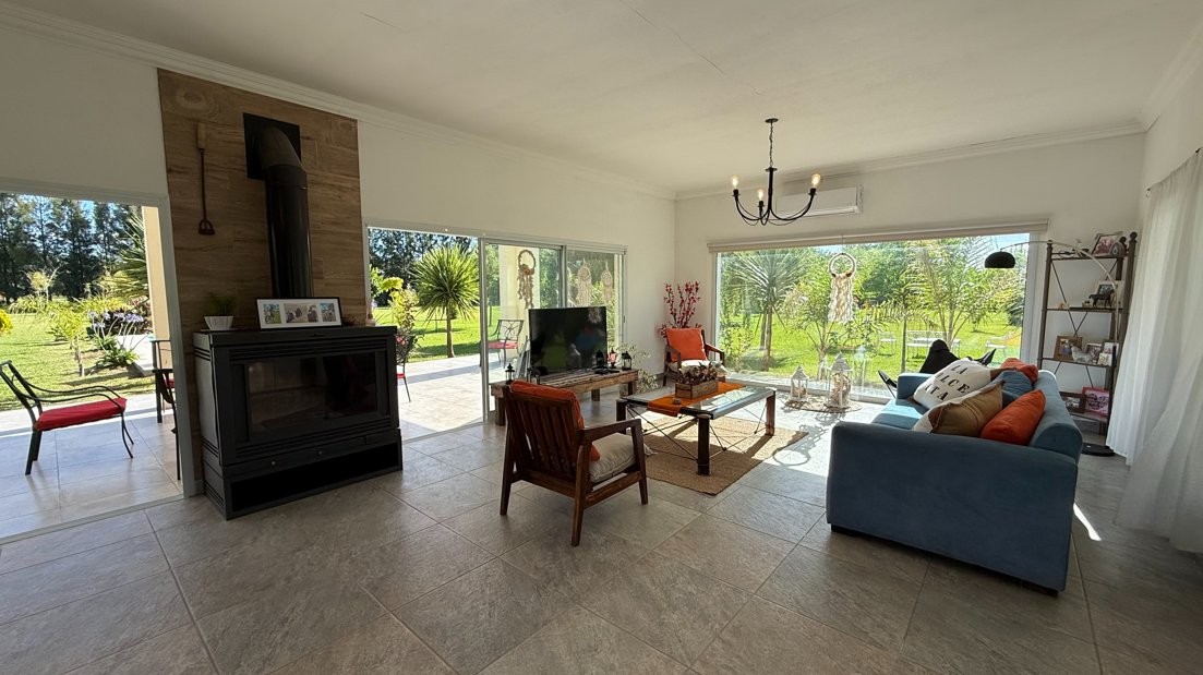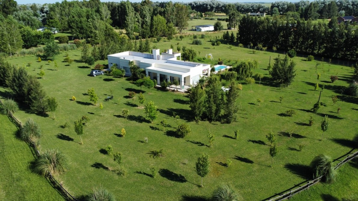 Destacada propiedad de muy buen nivel constructivo, desarrollada íntegramente en planta baja, emplazada sobre un amplio lote parquizado de 12.474 m², en un entorno abierto, verde y sumamente tranquilo, ideal para quienes buscan calidad de vida, confort y privacidad.