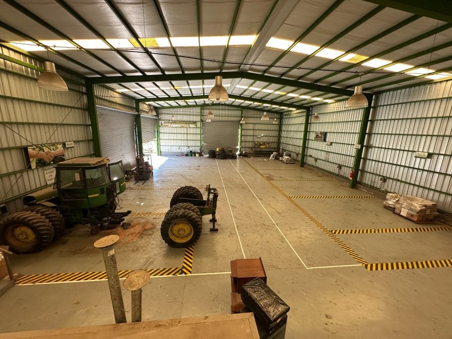 Cuenta con un tinglado principal de 20 x 50 metros, construidos en estructura metálica con paredes y techos de chapas galvanizadas, en excelente estado de conservación. Dispone de dos amplias alas de acceso que facilitan la entrada y salida de maquinaria pesada o camiones, optimizando la operatividad interna.