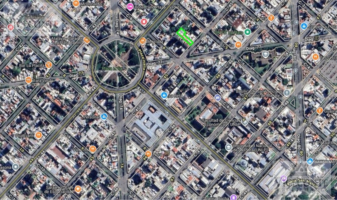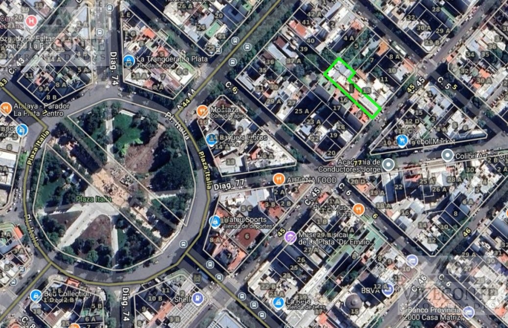 El inmueble está en el centro urbano de La Plata, en una zona muy céntrica y transitada de la ciudad. posee servicios de luz eléctrica, gas natural, agua corriente, cloacas y asfalto. A tan solo una cuadra de Plaza Italia y la peatonal comercial (calle 8) con muchas tiendas, bancos, oficinas y servicios, donde conviven comercios, oficinas, otros departamentos y servicios varios.
