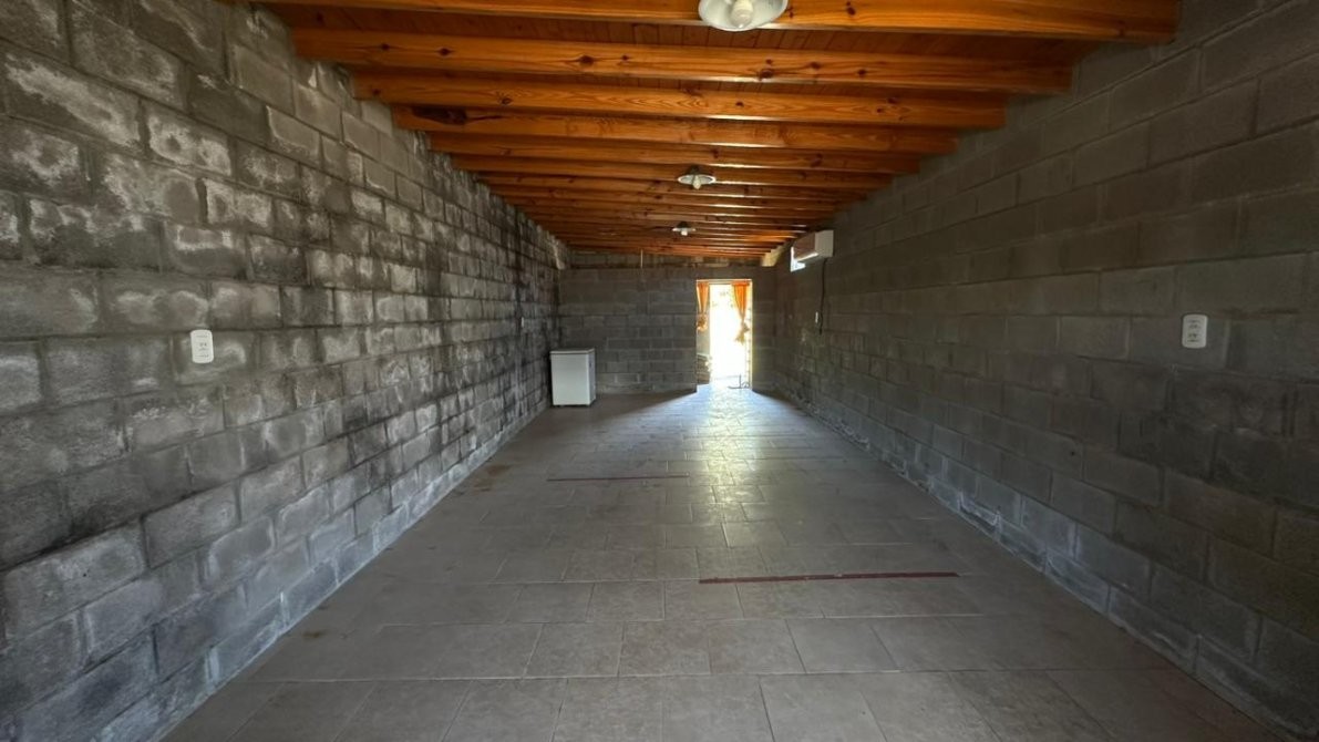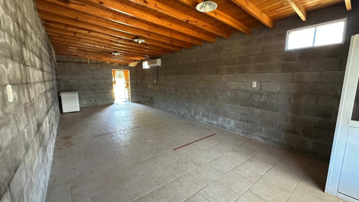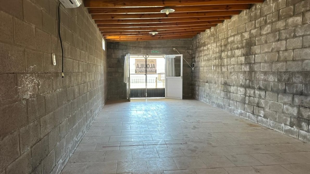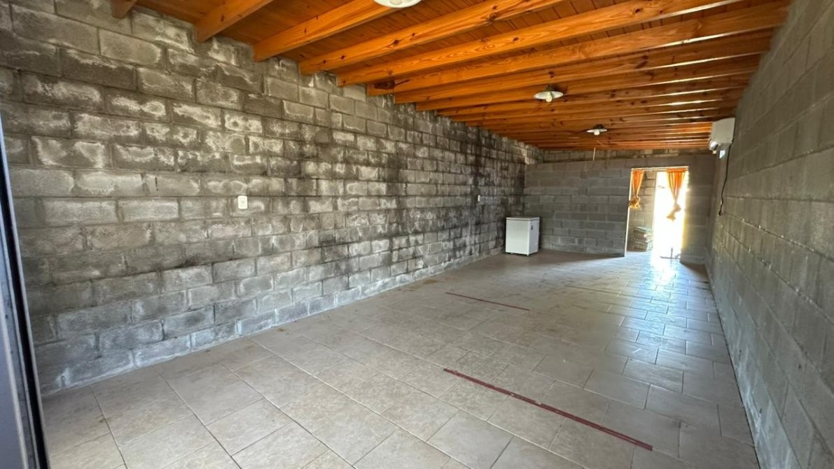 El inmueble dispone de un salón principal amplio y funcional, con paredes de bloques a la vista, piso cerámico y techo de madera de buena altura, ofreciendo un espacio sólido y versátil para distintos usos comerciales.