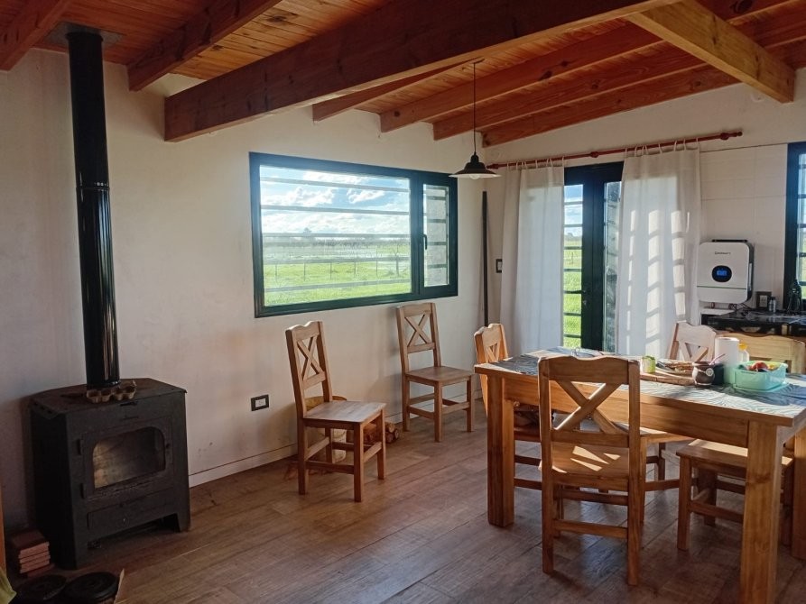 La propiedad cuenta con una casa de aproximadamente 80 m², compuesta por cocina–living–comedor integrados, un dormitorio y baño, ideal para vivienda permanente, casa de fin de semana o puesto de campo.