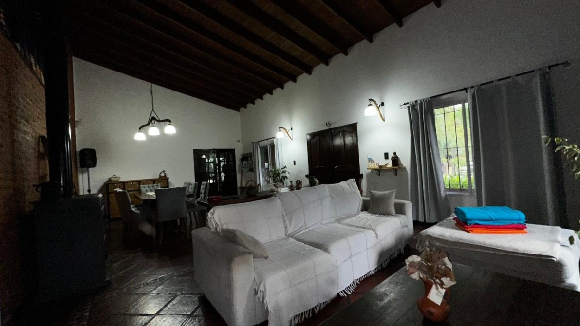 - 1 living-comedor con hogar a leña y estufa tromén.