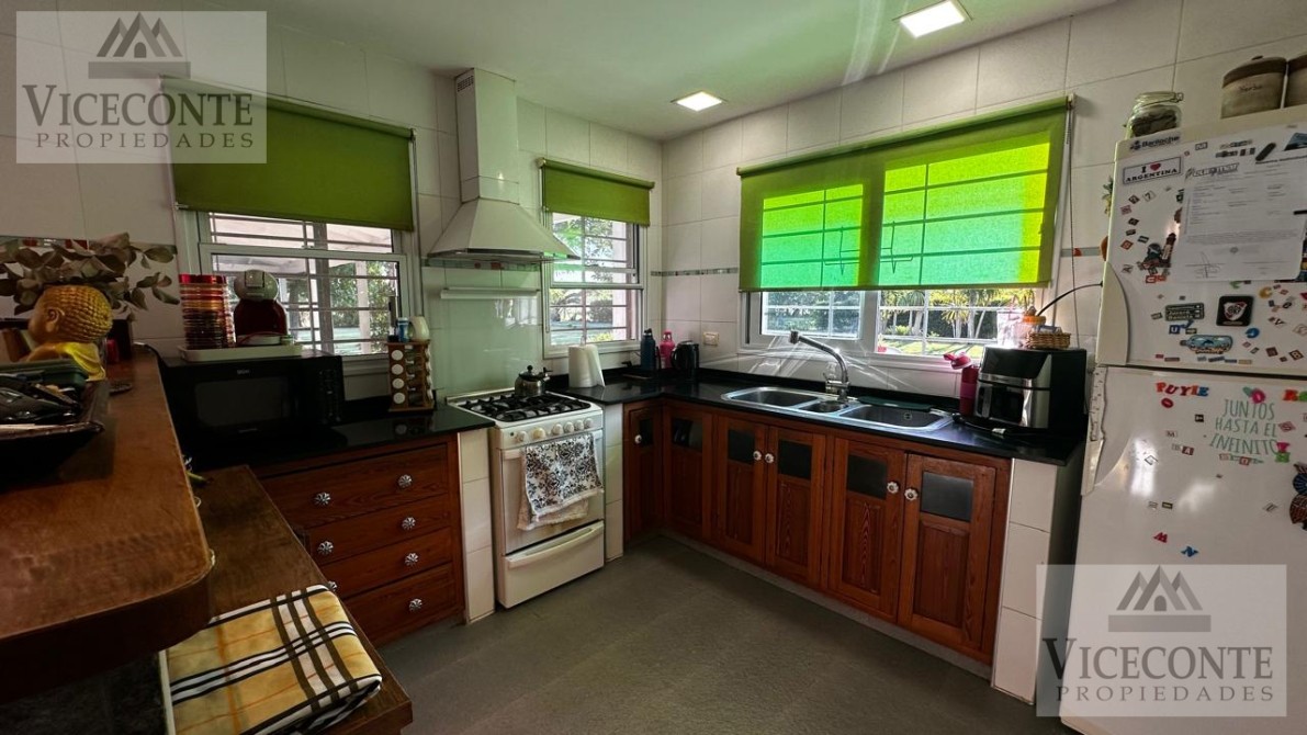 Aberturas de aluminio y madera, vidrio dvh, rejas en todas sus aberturas. Techo de chapa de sing, cielorraso de yeso en totalidad de la casa a excepción del garage donde existe cielorraso de madera con tirante a la vista. Pisos de porcelanato. Cámaras de seguridad. Alarma. Termo Solar. Excelente iluminación.
