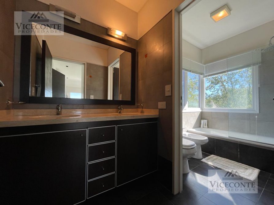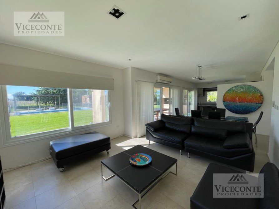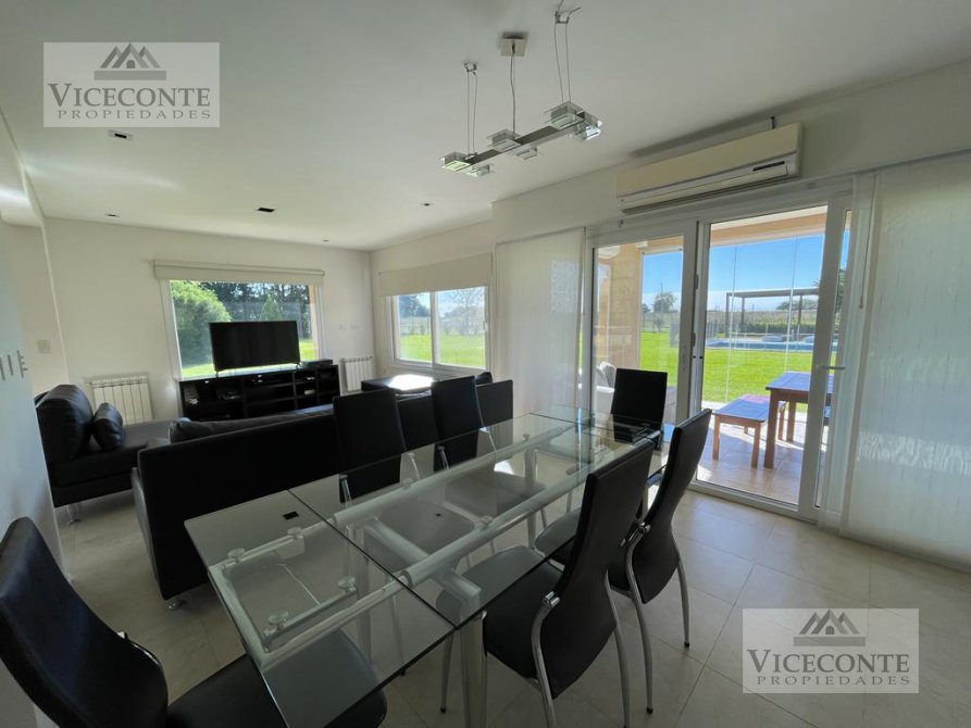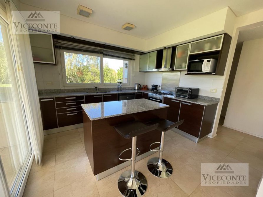 En Planta baja: Living- comedor con cocina integrada y barra desayunadora, dormitorio con placard embutido, lavadero y baño. Garage semi-cubierto para dos vehiculos. Quincho amplio con parrilla, el mismo cuenta con un vistoso cerramiento plegable dandole una gran vista e iluminacion. Hermosa piscina climatizada con isla humeda y tejido perimetral. Pergola con deck de madera y deposito de herramientas.