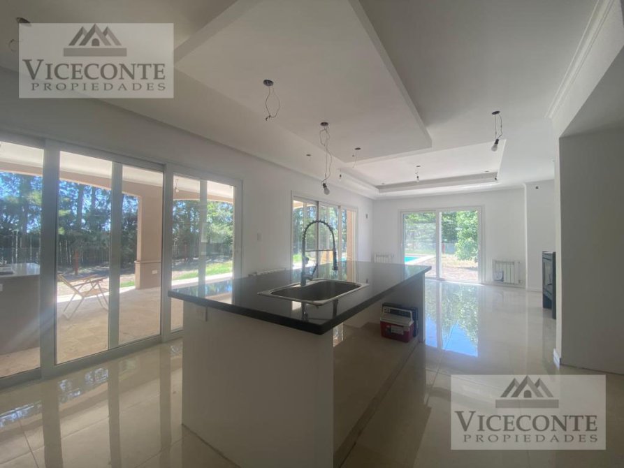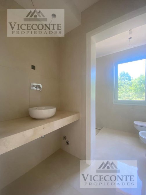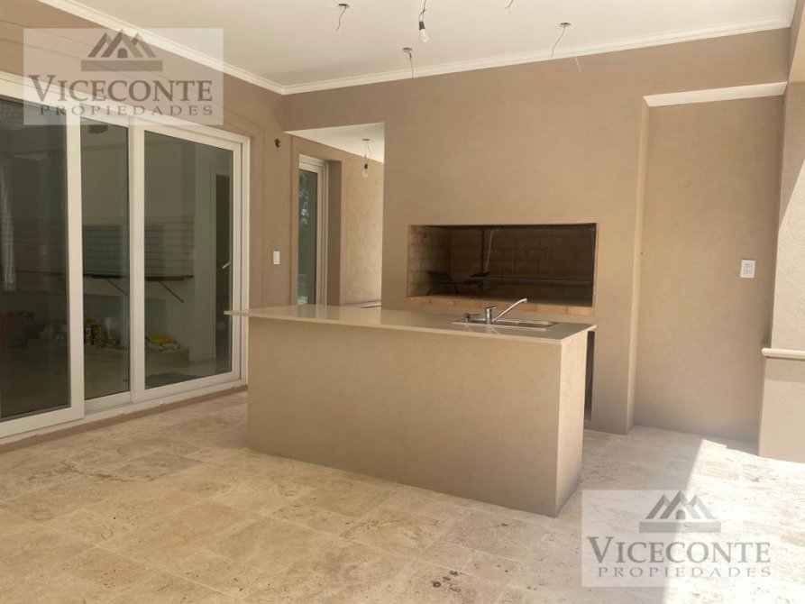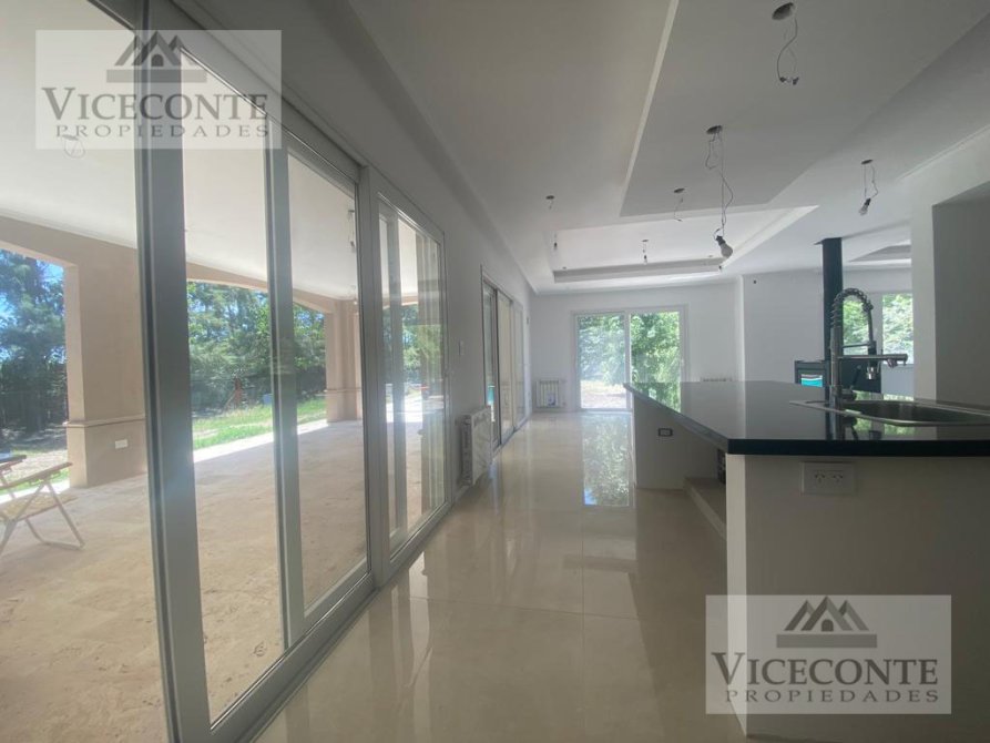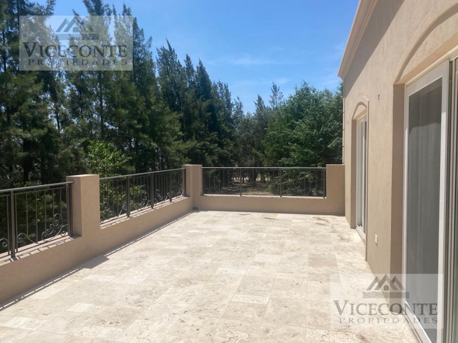 Balcón, galería cubierta, terraza, veredas perimetrales de toda la casa y solarium de piscina en Travertino turco (con certificados de importación).