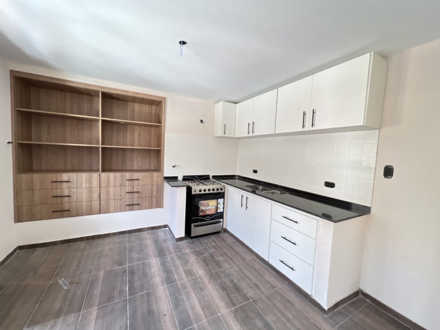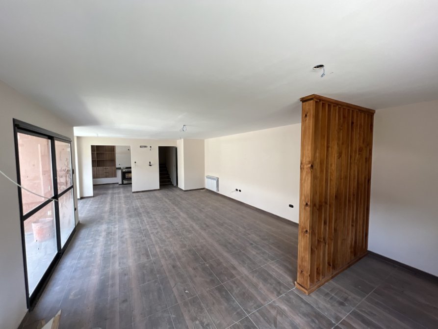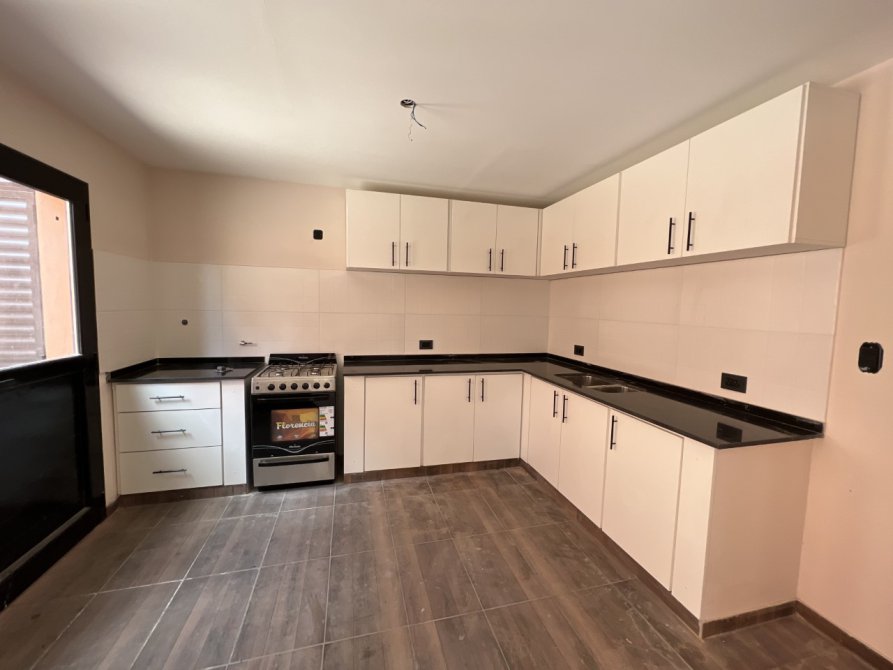 - Amplio estar con TV y un comedor de grandes dimensiones con vistas al jardin. Y la cocina contigua al comedor que cuenta con muebles bajomesada y alacena en todo su recorrido, con entrada desde la cochera/ jardin.