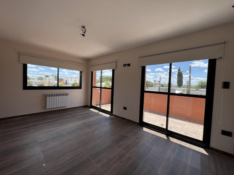 - Cuenta con tres dormitorios. Por un lado la suite principal que cuenta con un amplio sector de descanso , vestidor y baño completo, con balcon hacia el frente. Por el otro sector , se ingresa a los dos cuartos con placar y baño completo.