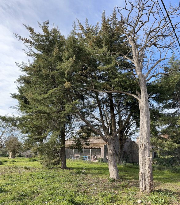 - Frente con cerco de madera y uno de sus linderos con tejido romboidal.