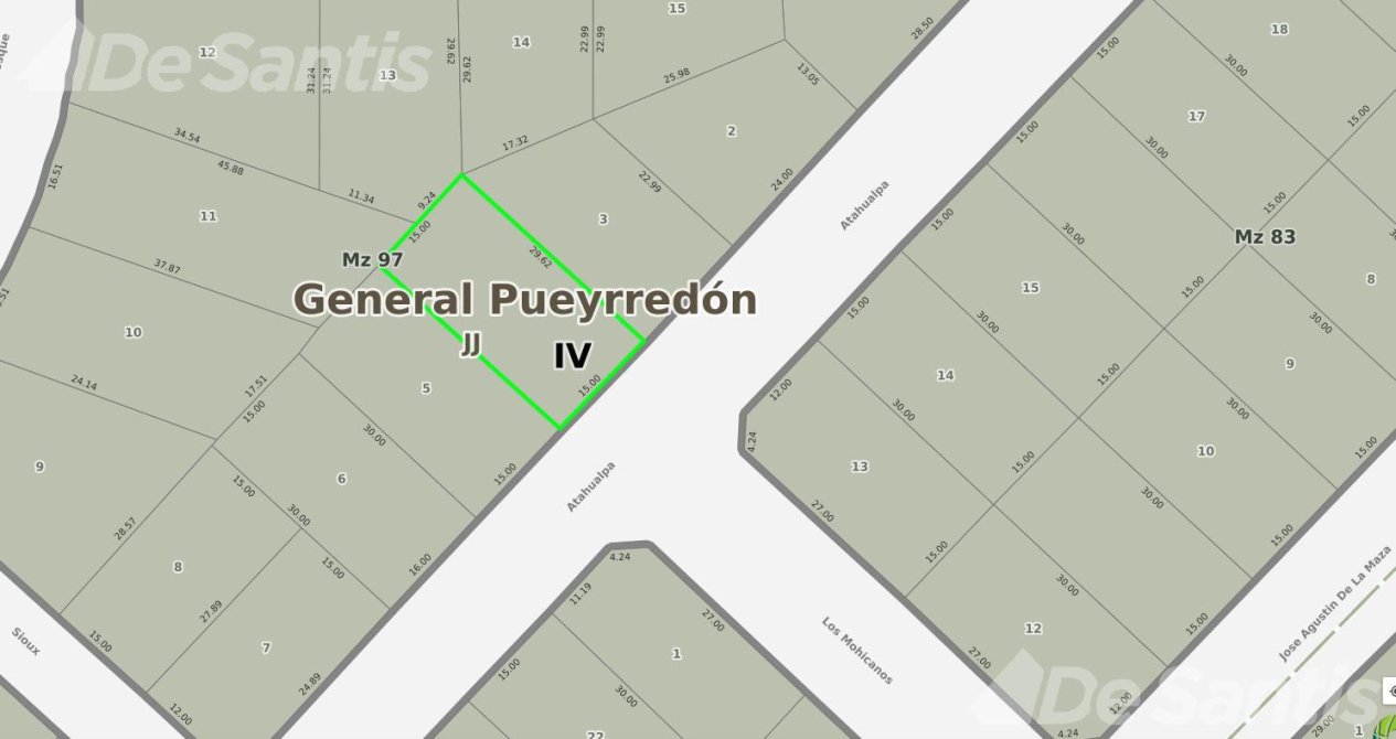 Cuenta con una superficie de 15 m2 de frente x 29,80 de fondo, haciendo una superficie total para cada lote de 447 m2.