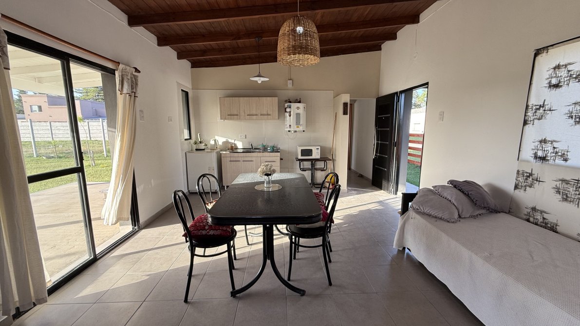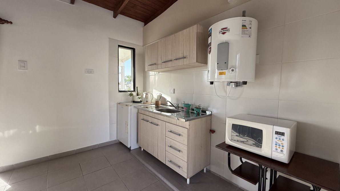- Casa emplazada en dos ambientes, constituida por cocina-living-comedor muy luminoso con vista al parque, dormitorio, ante baño y baño.