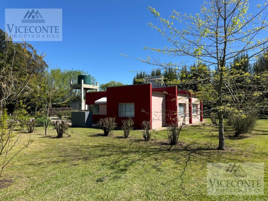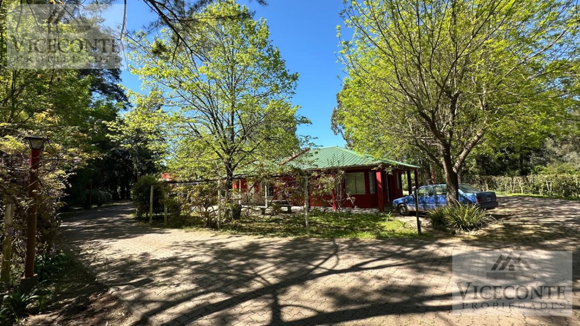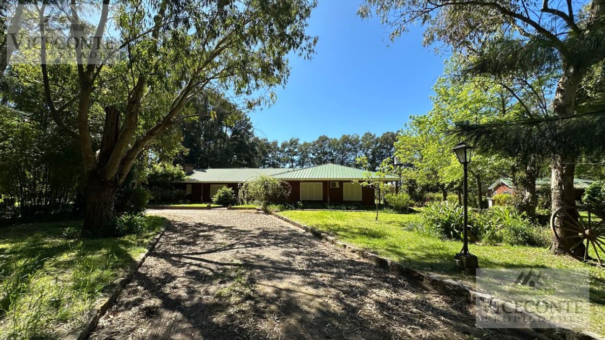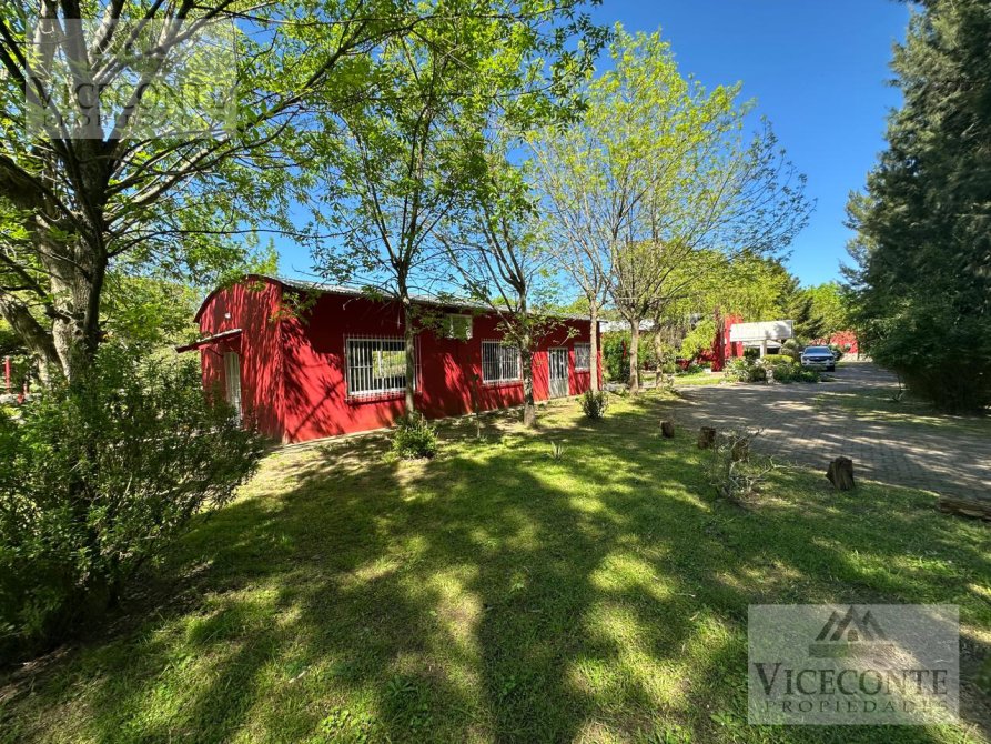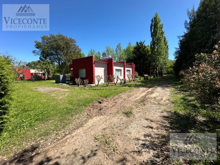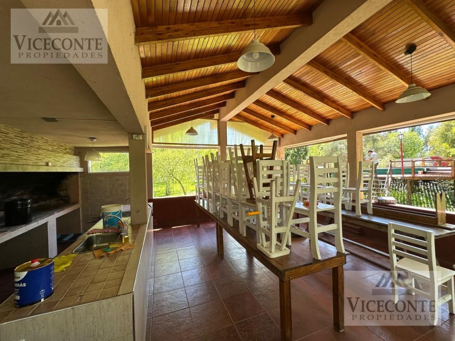 - Casa Principal: (superficie Total: 340m2, Superficie cubierta: 230m2; Superficie Semicubierta: 120m2). Compuesto por: living-comedor con hogar y estufa MAGE, cocina con mesada y bajo mesada con alacenas embutidas, parrilla interna con mesada y bajo mesada, un lavadero con mesada y bajo mesada, 3 dormitorios, 1 baño con ducha y muebles embutidos. aberturas de cedro y techo con vigas con madera reconstituido. El interior del comedor se encuentra revestido con ladrillos a la vista y piedra, quedando en el mismo una mesa de ciprés de 5mts de largo. Techo de chapa, galería semicubierta para auto y galería en todo el contorno de la casa. Patio con mesa exterior. Quincho: (38,7m2): Horno MAGE, con mesada y bajo mesada, techo a dos aguas de chapa de zinc, revestida la pared interior de piedra y cielorraso de madera. Palomar: de forma circular de cemento.