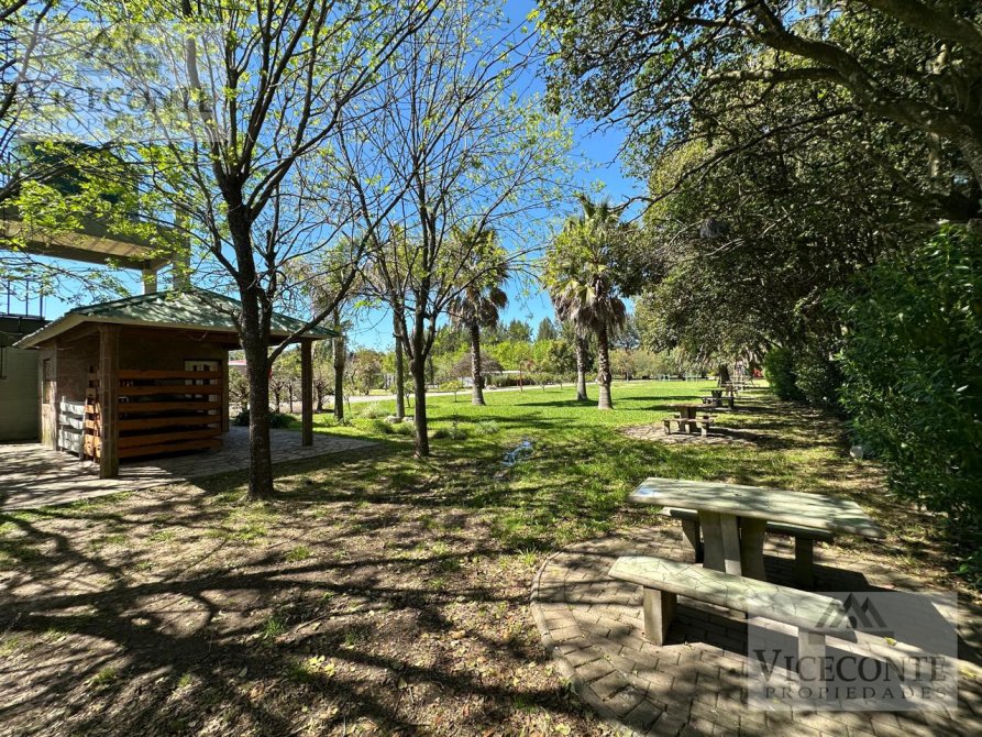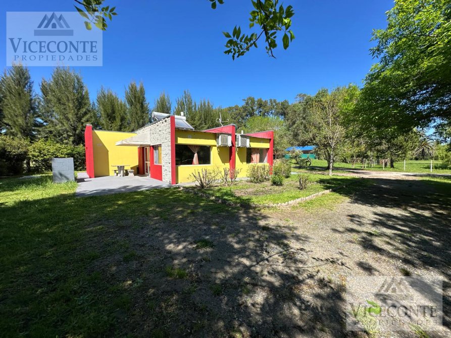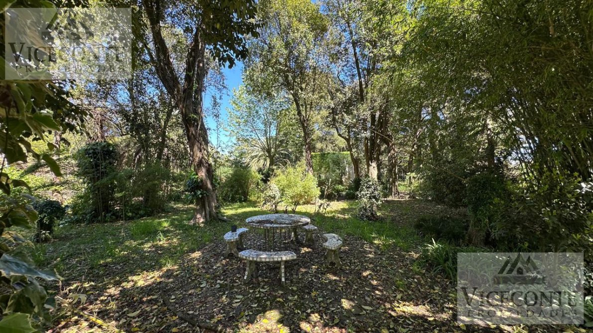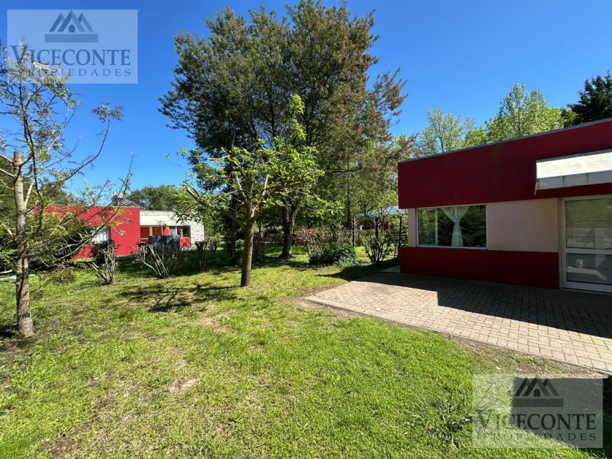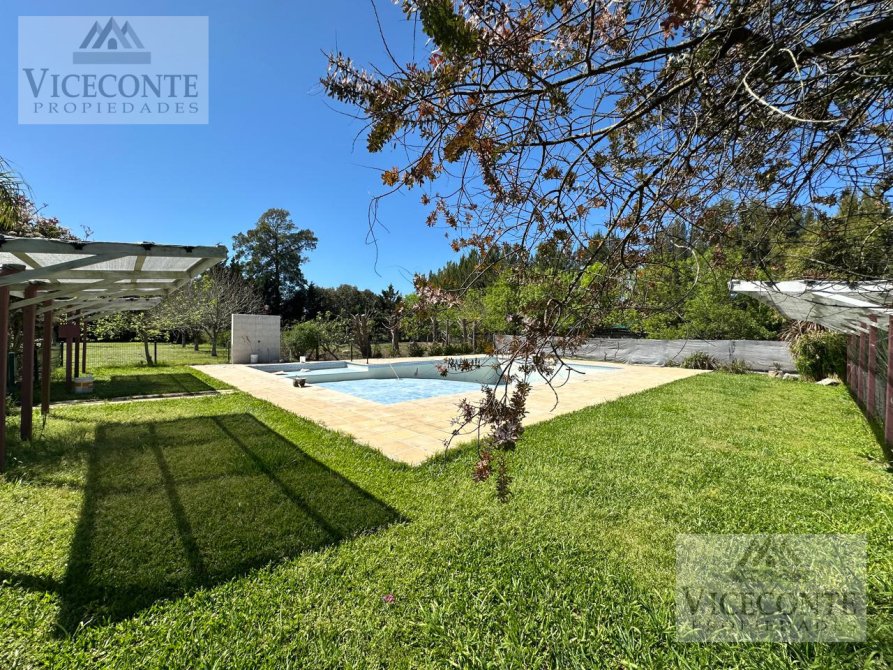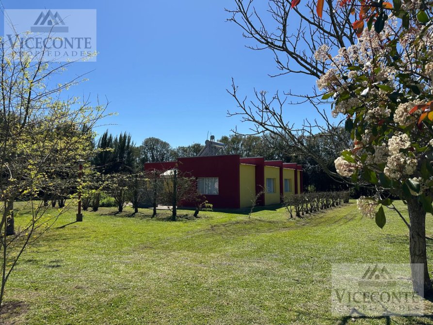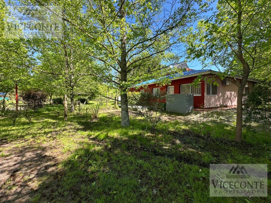 - Casa Principal: (superficie Total: 340m2, Superficie cubierta: 230m2; Superficie Semicubierta: 120m2). Compuesto por: living-comedor con hogar y estufa MAGE, cocina con mesada y bajo mesada con alacenas embutidas, parrilla interna con mesada y bajo mesada, un lavadero con mesada y bajo mesada, 3 dormitorios, 1 baño con ducha y muebles embutidos. aberturas de cedro y techo con vigas con madera reconstituido. El interior del comedor se encuentra revestido con ladrillos a la vista y piedra, quedando en el mismo una mesa de ciprés de 5mts de largo. Techo de chapa, galería semicubierta para auto y galería en todo el contorno de la casa. Patio con mesa exterior. Quincho: (38,7m2): Horno MAGE, con mesada y bajo mesada, techo a dos aguas de chapa de zinc, revestida la pared interior de piedra y cielorraso de madera. Palomar: de forma circular de cemento.