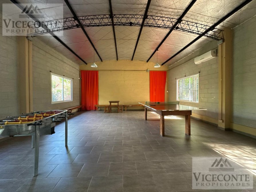 - Complejo de (105m2) compuesto por: Lavadero: Mesada, 2 bachas y bajo mesada abiertas. Comedor de los empleados: con mesada y bajo mesada. Salón de Juegos: 1 baño, techo de chapa con caída circular a dos aguas. Todos los ambientes poseen cerámicos travertino.