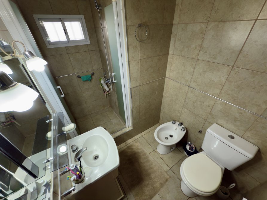 El baño principal de la casa se encuentra en excelente estado, totalmente azulejado y con todos sus artefactos en condiciones óptimas.