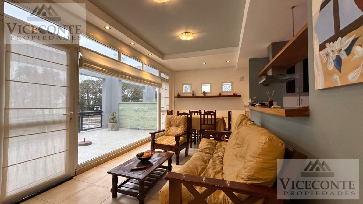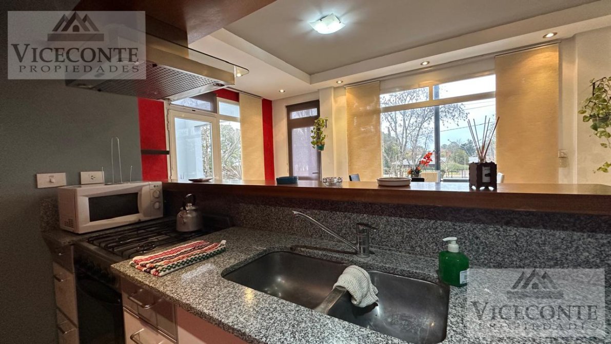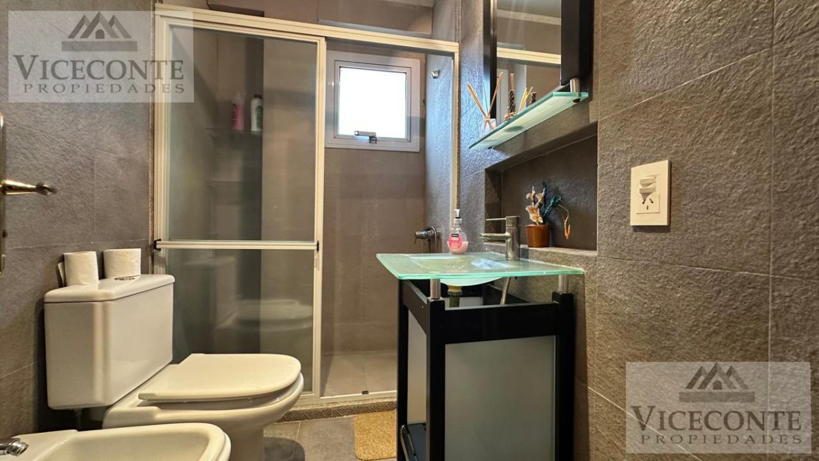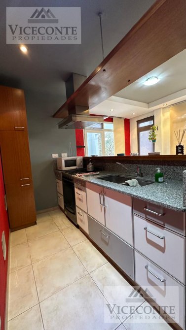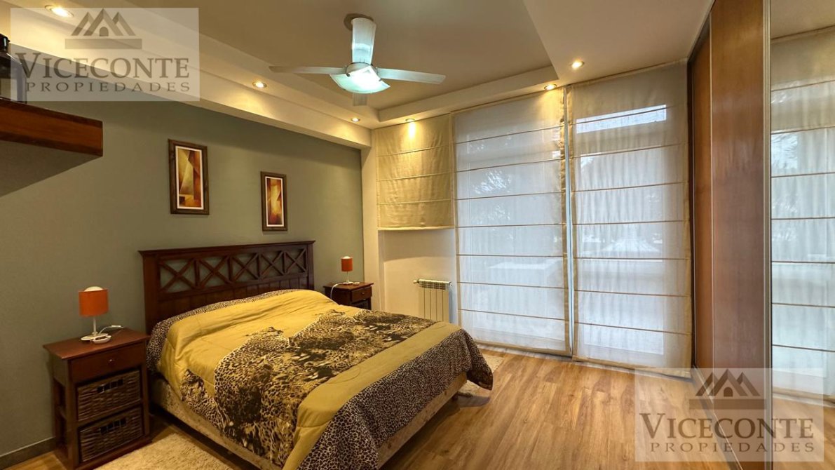 - Departamento 1: living comedor con ventanal a la terraza con calefacción por radiador de agua caliente (calefactor) y aire acondicionado frio calor (Alaska), con barra pasa plato a la cocina la que presenta mesada, bajo mesada y alacenas superiores, un depósito de lavarropa y caldera. 1 terraza de (3x10,50), 2 habitaciones con placar embutido, pisos flotantes y calefacción por radiador de agua caliente, una de ellas con ventanal hacia la terraza; 1 baño con ducha. pisos de cerámicos en todo el departamento a excepción de las habitaciones que presenta pisos flotantes, aberturas de DVH.
