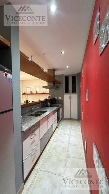 - Departamento 2: cocina con mesada y bajo mesada con alacenas inferiores y barra pasa plato al living comedor con ventanal a la terraza y hacia calle Perón, calefacción por radiador de agua caliente y aire acondicionado frio/calor (Alaska); 1 baño con ducha; 2 habitaciones con placar embutido, piso flotante y calefacción por radiador de agua caliente (radiador) ventilador de techo.