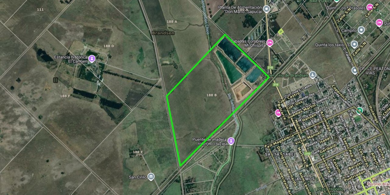 Campo 106 has, sobre RP 210, Brandsen, Buenos Aires. Habilitado para extracción de tierra.