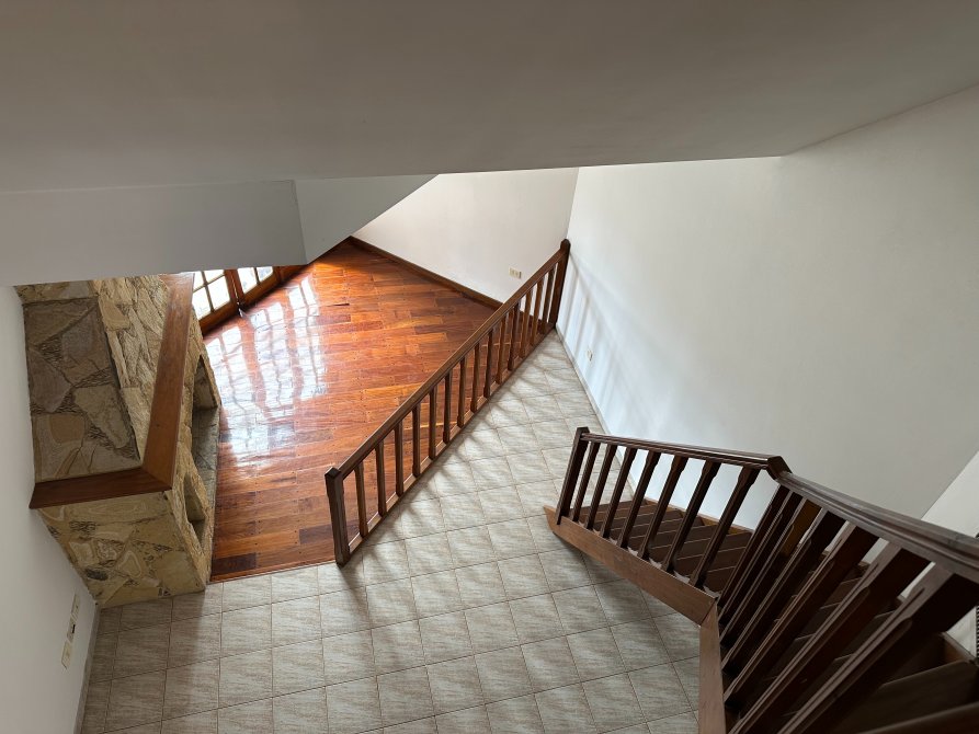 Al ingresar por la escalera principal, nos recibe un luminoso living con estufa hogar y una segunda escalera que conduce a un cómodo entrepiso o espacio multifunción.