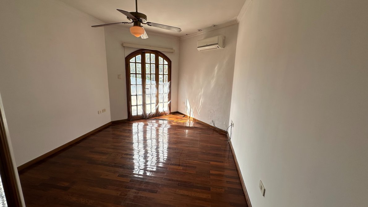 Un pasillo distribuidor nos lleva a un baño completo, y continuando, encontramos tres dormitorios con placard empotrado y ventiladores de techo, más una habitación principal amplia con aire acondicionado y otro baño completo con bañera.