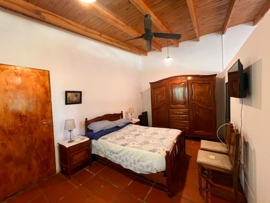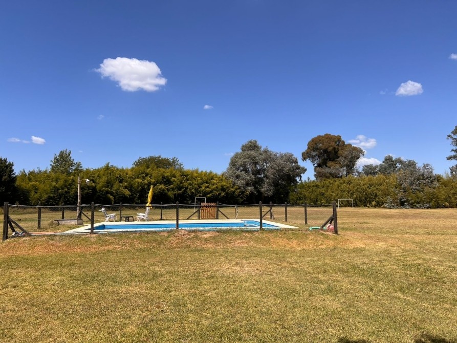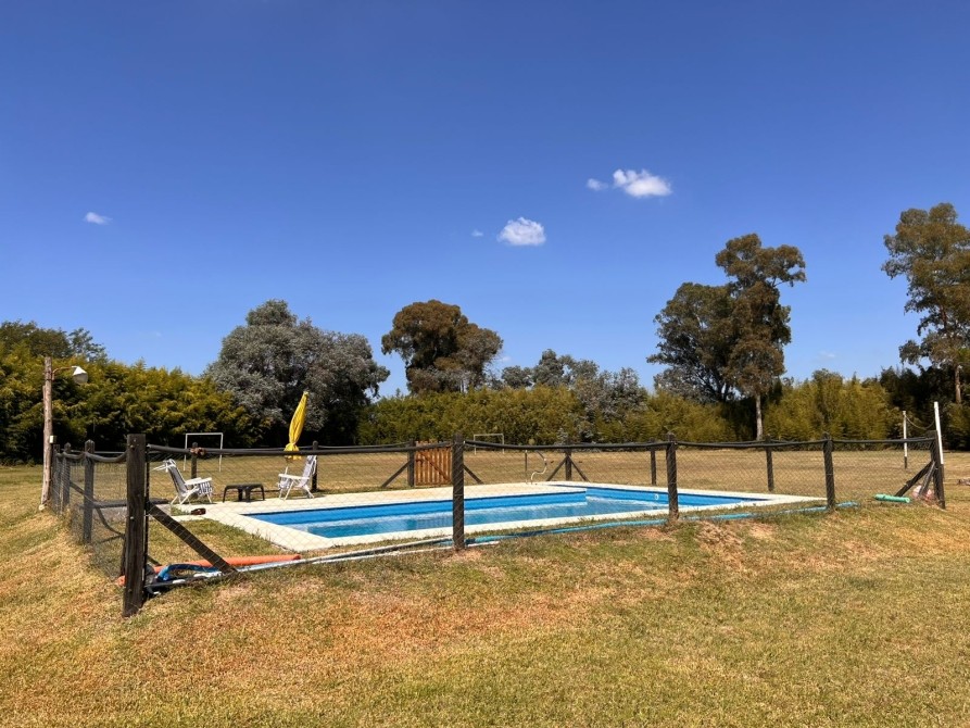 - Pileta de 4 x 8 m con playa húmeda de 2 x 1, cerco perimetral, baldosas refractarias y sistema de filtrado con motor