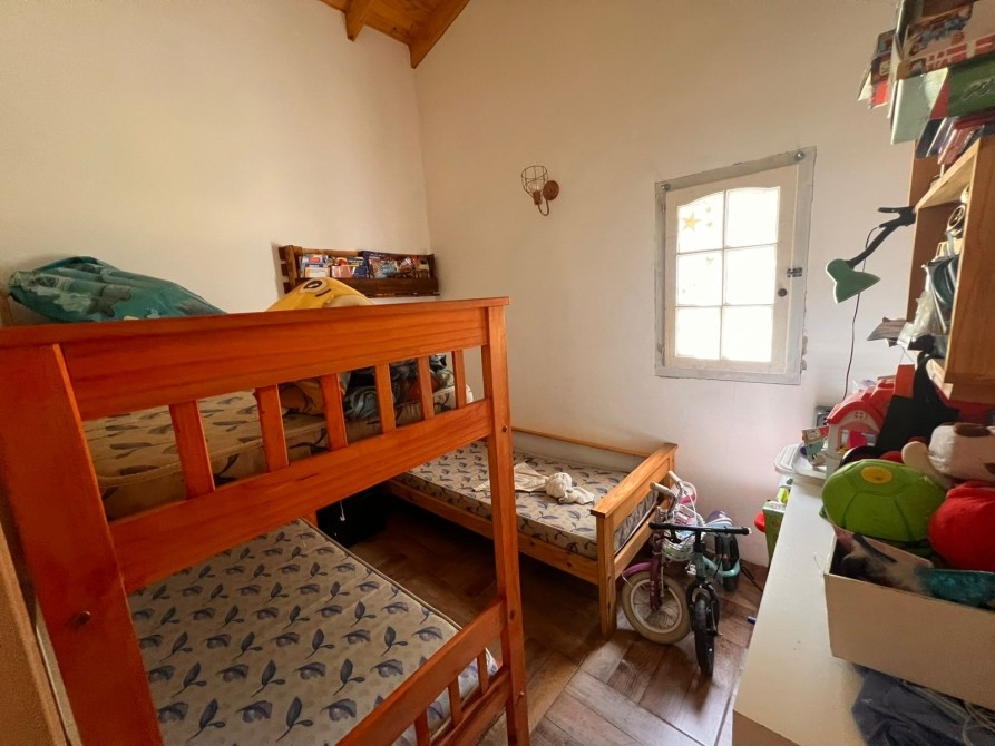 Tercer casa: Dormitorio amplio o sala de juegos, living-comedor, cocina, baño, hogar a leña y estufa con tiro balanceado (61 m²).