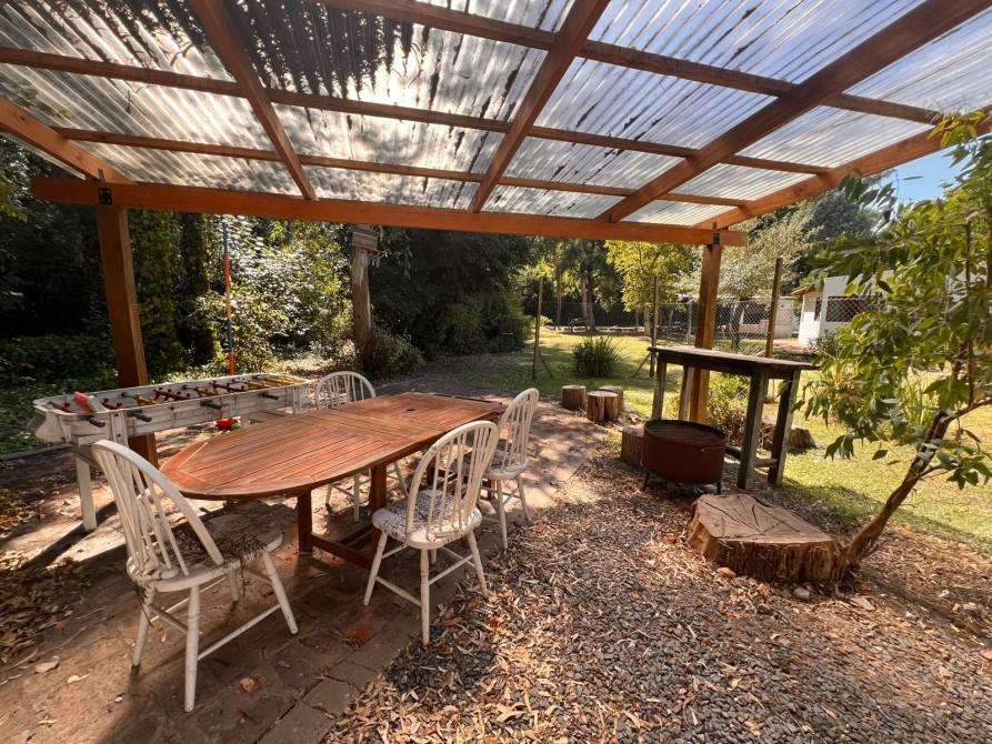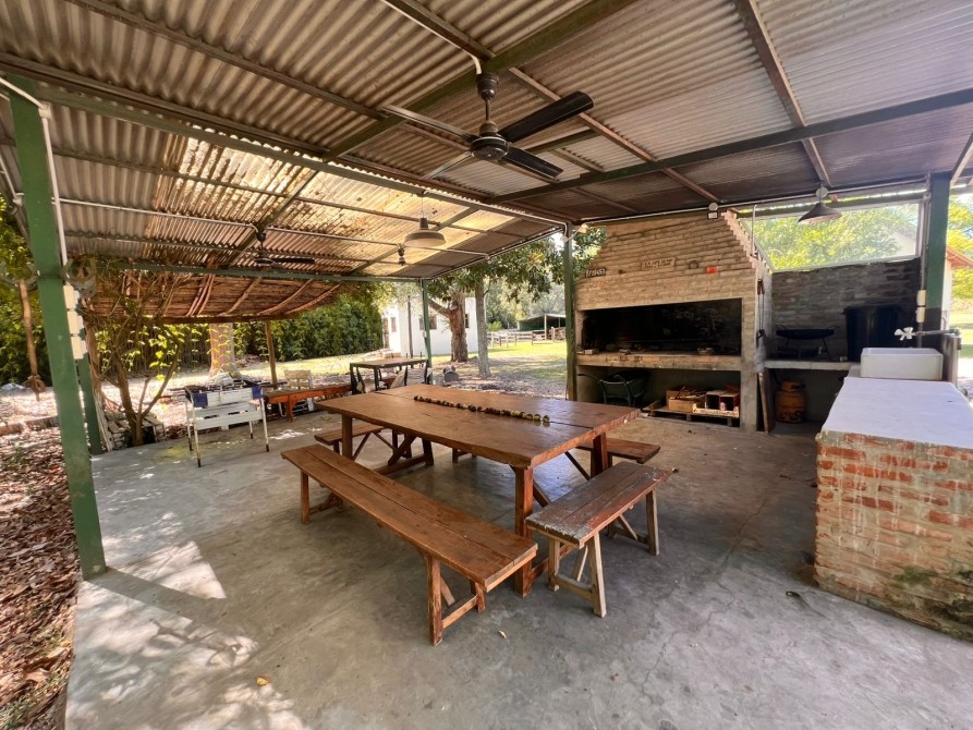 - Quincho de 37 m² con parrilla, asador disco con mechero y garrafa, pérgola de cañas