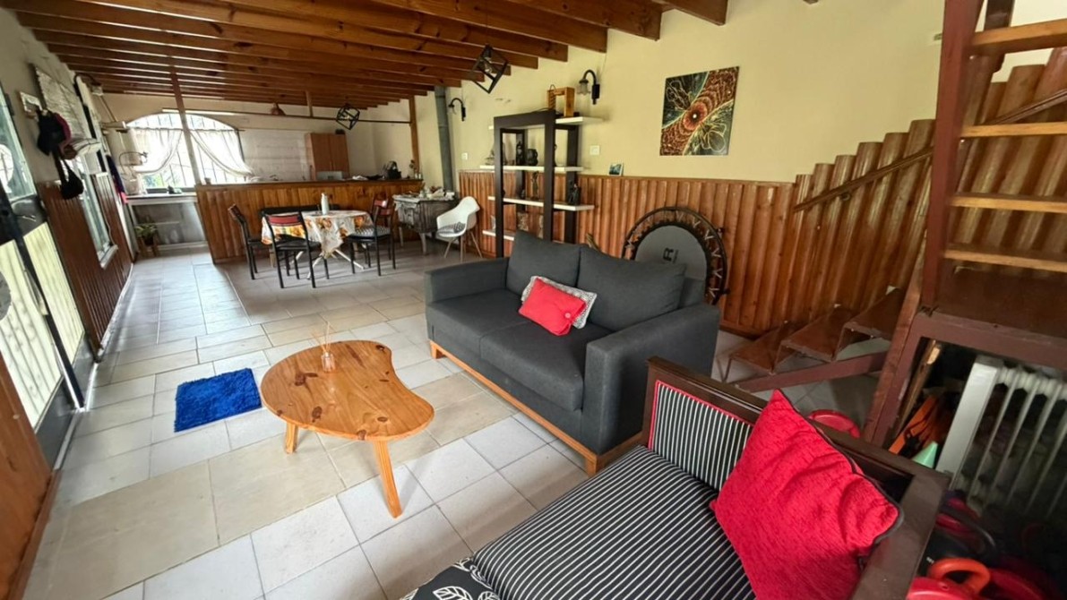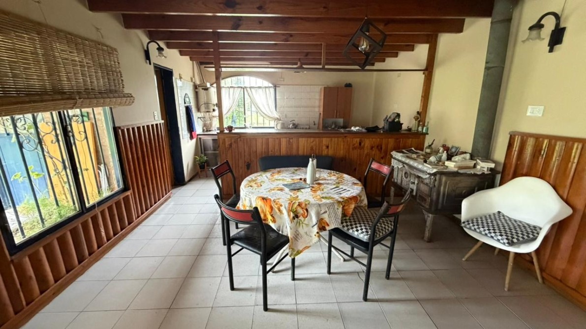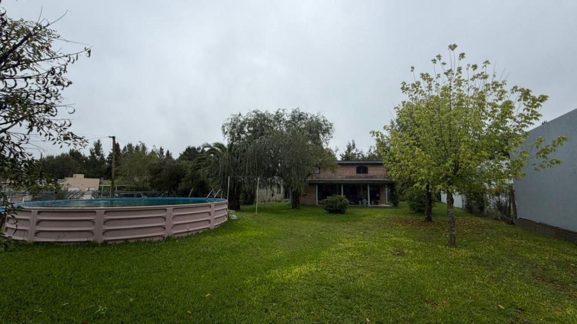 En el exterior, la casa ofrece una agradable galería, perfecta para reuniones y momentos de descanso, junto a una pintoresca pileta de forma circular que completa el espacio recreativo.
